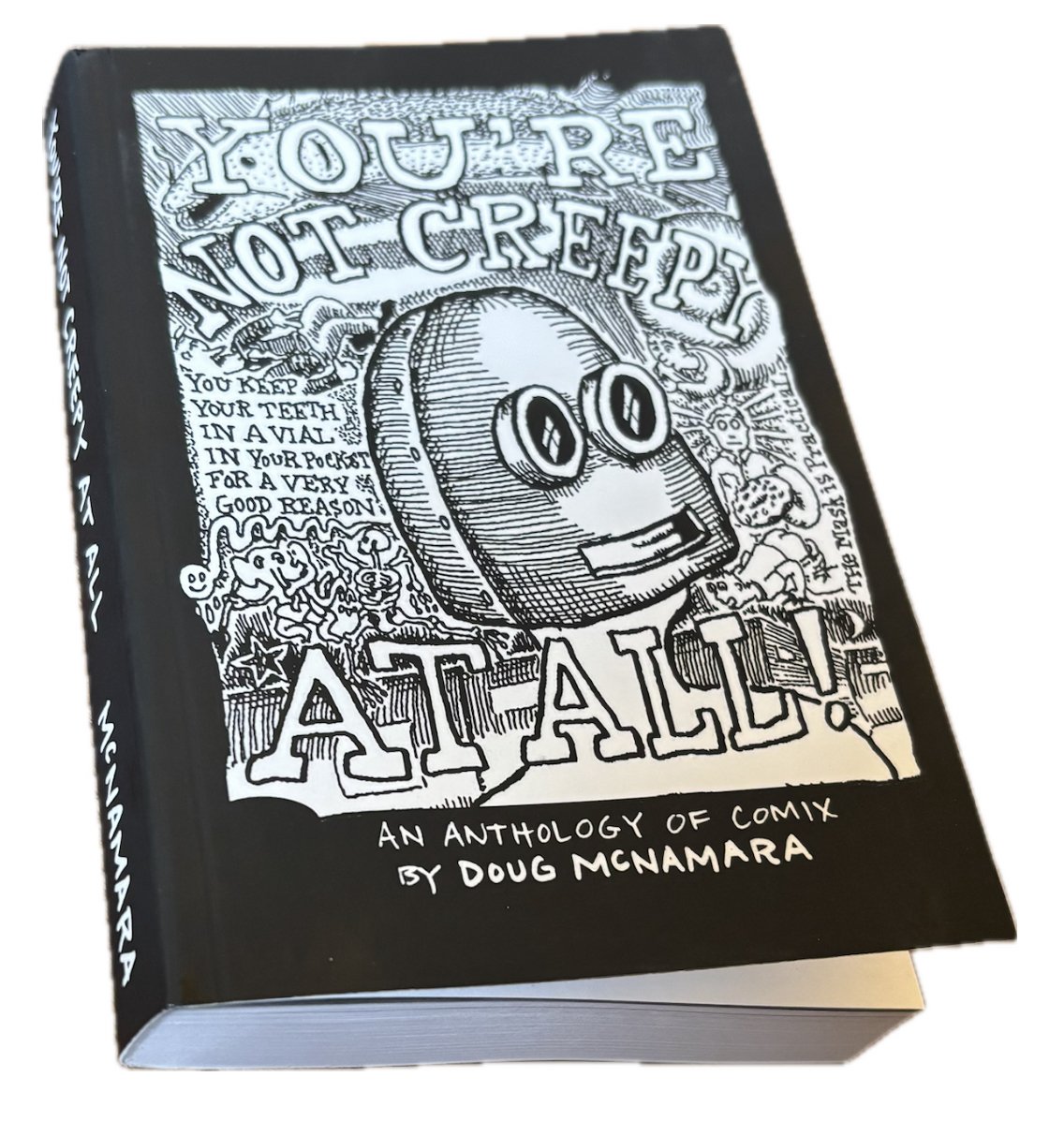 You're Not Creepy at All collects over 20 years of comics, including over 20 hand-published minicomix, plus some comics that appeared in the most adventurous publications on Earth, into a 300-page pocket-sized minicomix anthology.